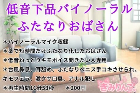 きみりんこ。 低音下品バイノーラルふたなりおばさん 高評価作品の続きを読む高評価作品の続きを読むレビュー5.00発売日2026-01-08収録1本 (約11分)ジャンル熟女 フェラ アナル シリーズもの 男性向け 成人向け ASMR バイノーラル 手コキ 男性受け 低音 下品 サークルきみり... 2026.02.12 きみりんこ。